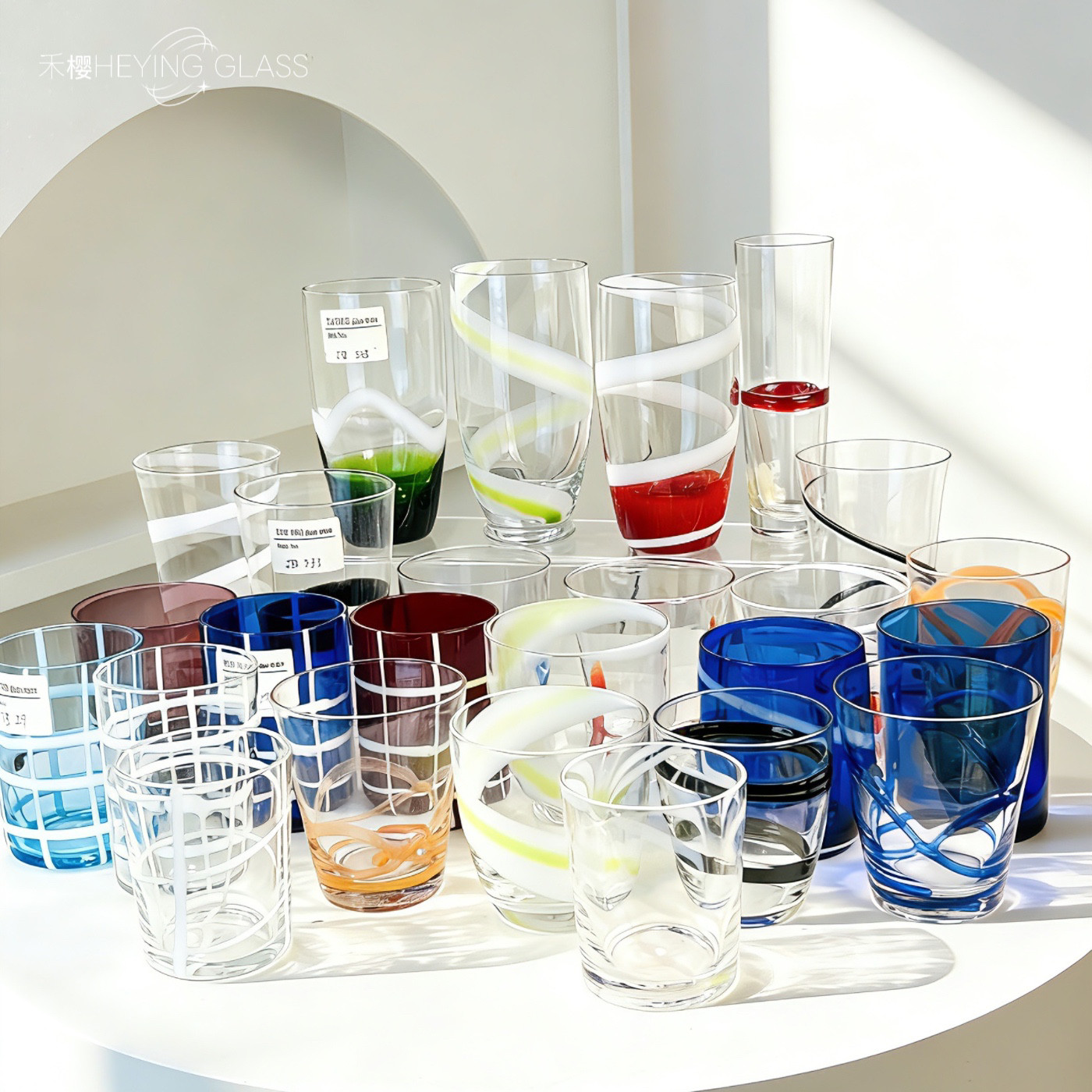 225禾樱意大利ZAFFERANO外贸法式小众早餐果汁彩色玻璃杯创意新款