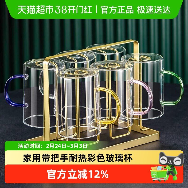 双层玻璃喝水杯耐高温咖啡杯彩色带把茶杯防爆高级感水杯套装家用