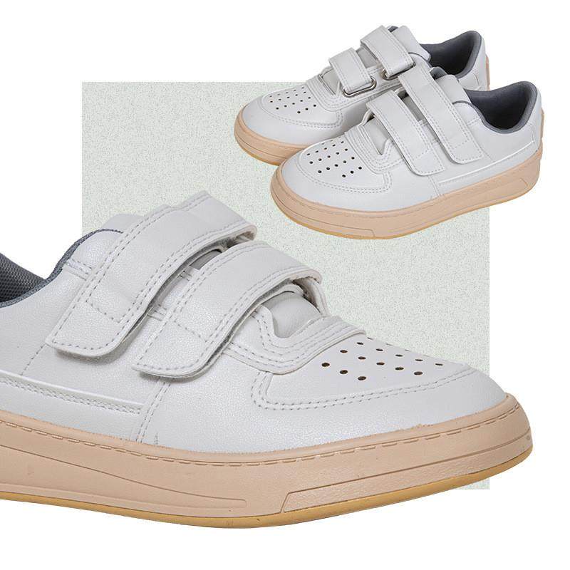 白鹿鞋业小众原宿风纯色魔术贴复古小白鞋厚底运动风百搭女鞋透气