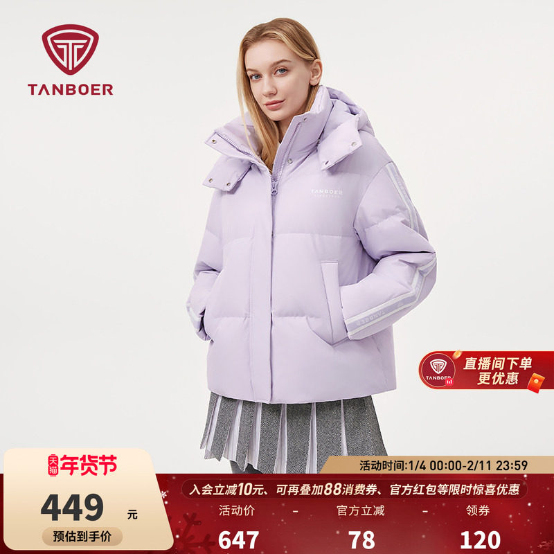 坦博尔羽绒服女款冬季短款运动时尚情侣男女同款休闲运动学生外套