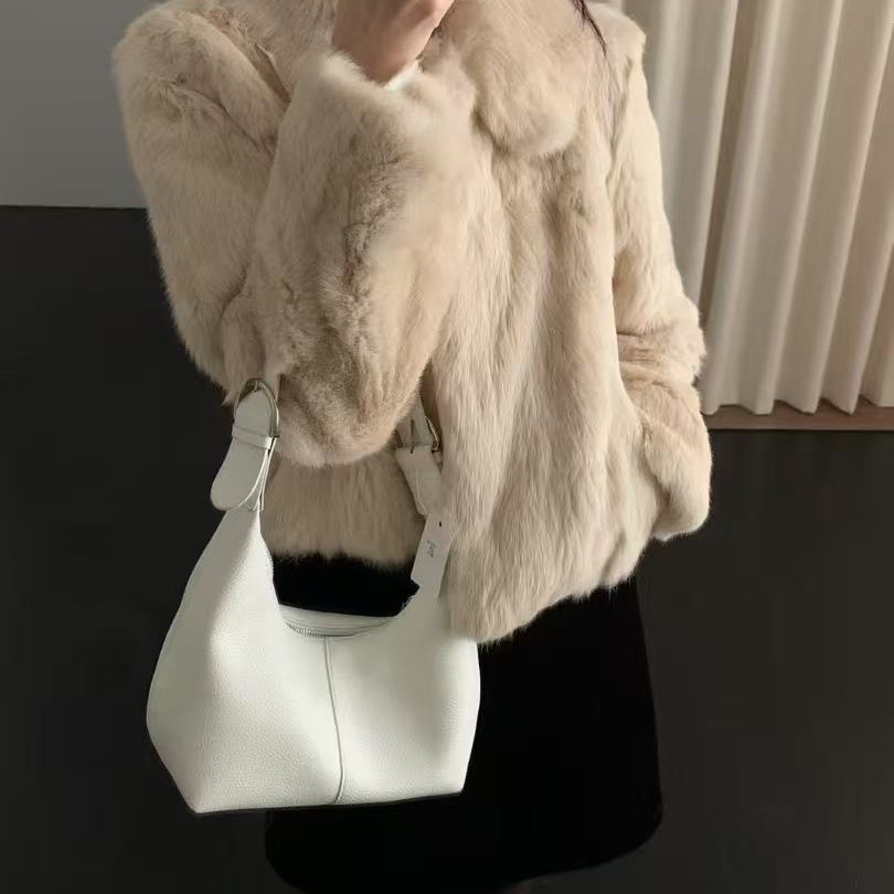 25新款进口全真雪兔毛皮草外套皮毛一体女短款时尚百搭年轻款翻领