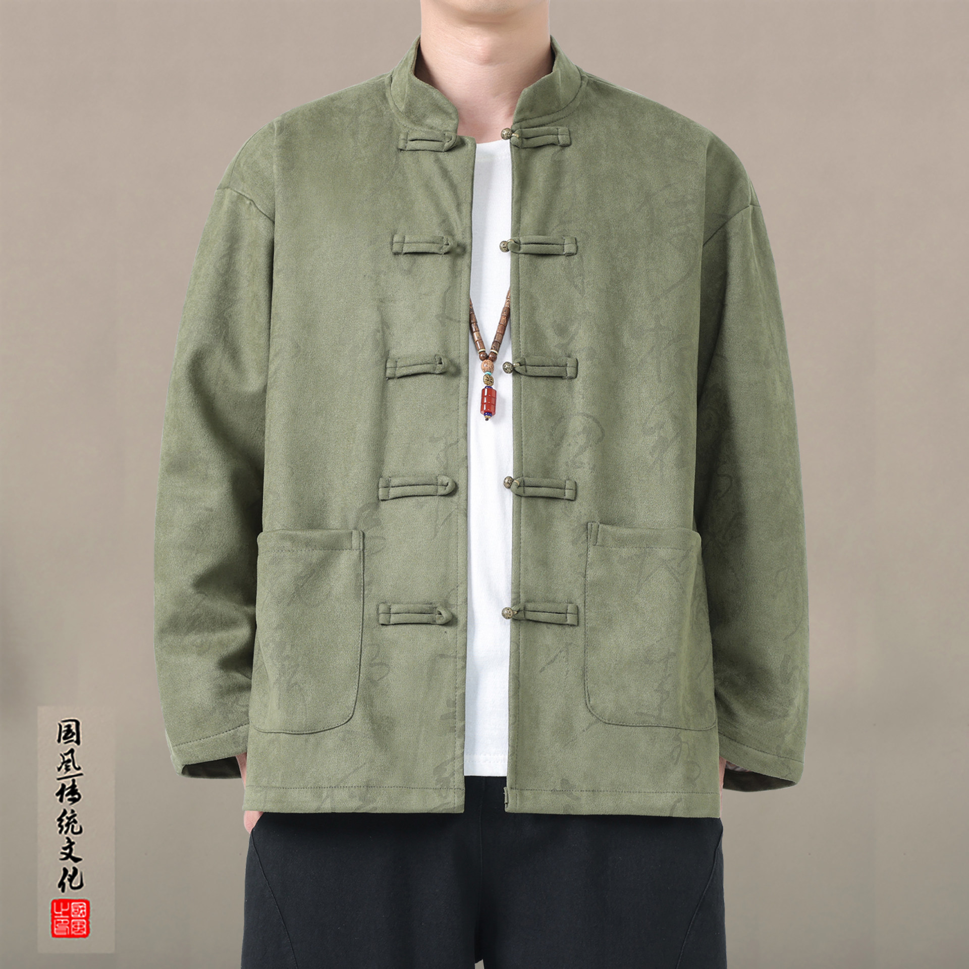 2025新款秋冬中国风外套男款鹿皮绒夹克男宽松盘扣复古新中式外套