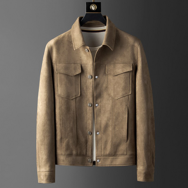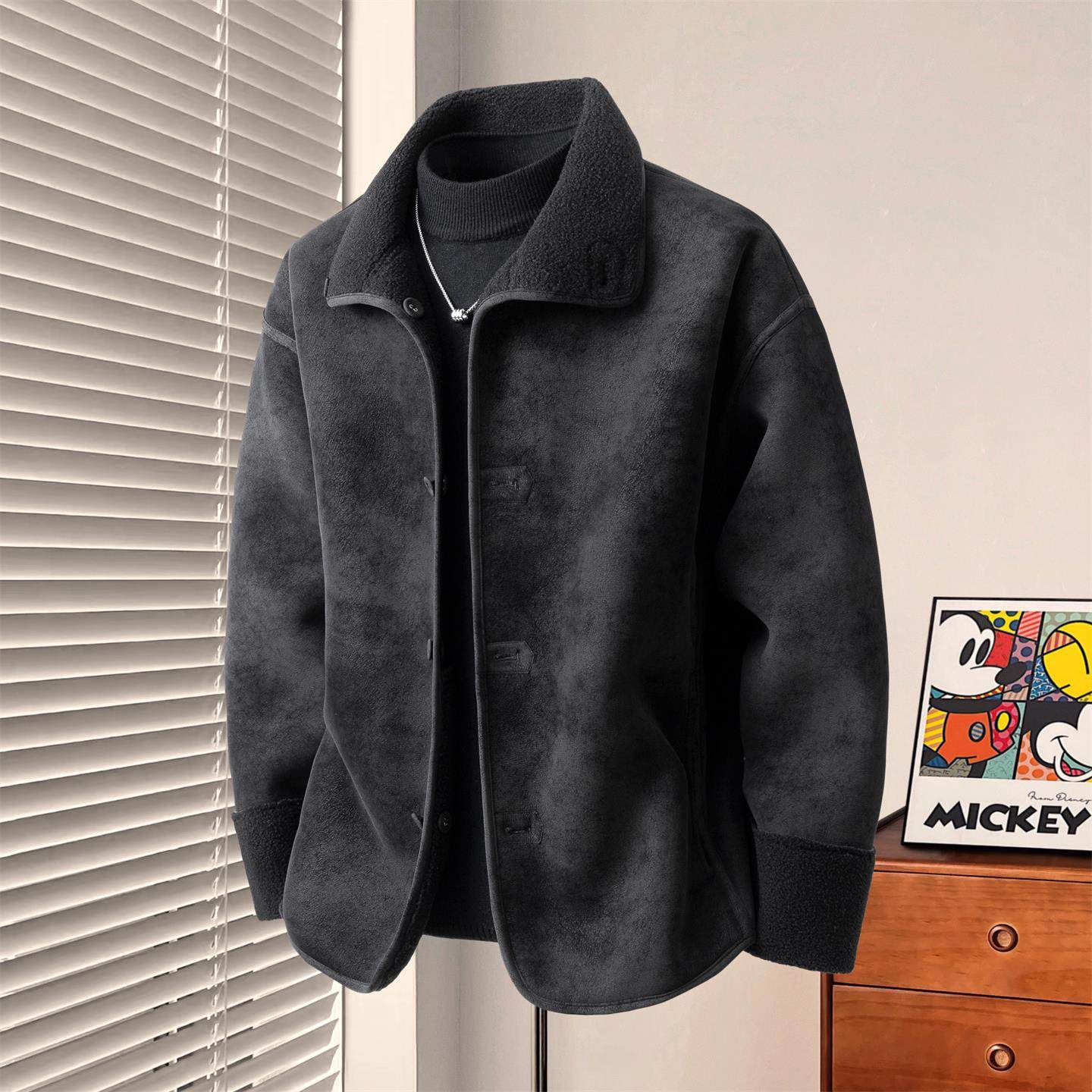 高端翻领鹿皮绒男士加厚夹克2025秋冬新品时尚韩版修身休闲外套男