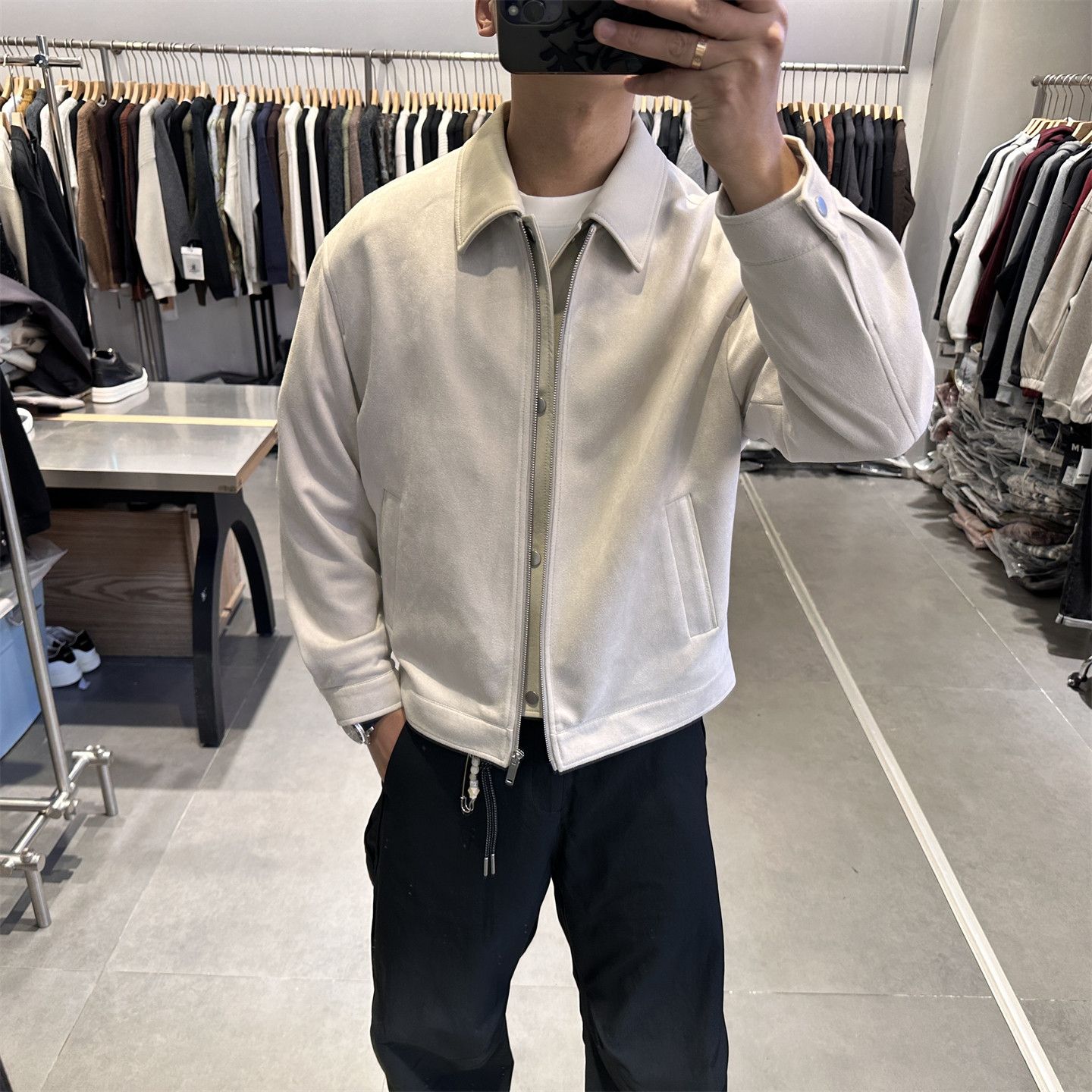 J25059秋季轻奢男士青果领鹿皮绒夹克外套高级感舒适时尚高品质酷