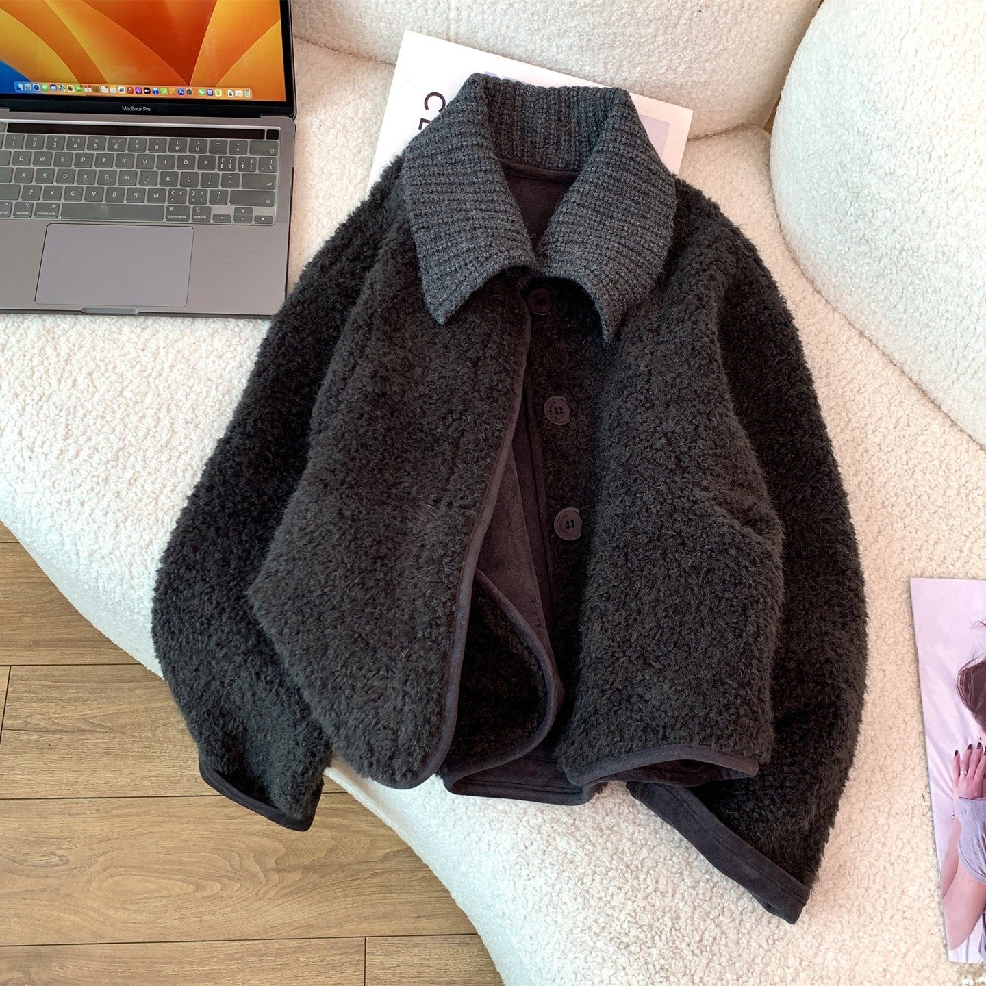 刘浩存同款羊羔毛外套女加绒皮毛一体夹克冬美拉德短款鹿皮绒大衣