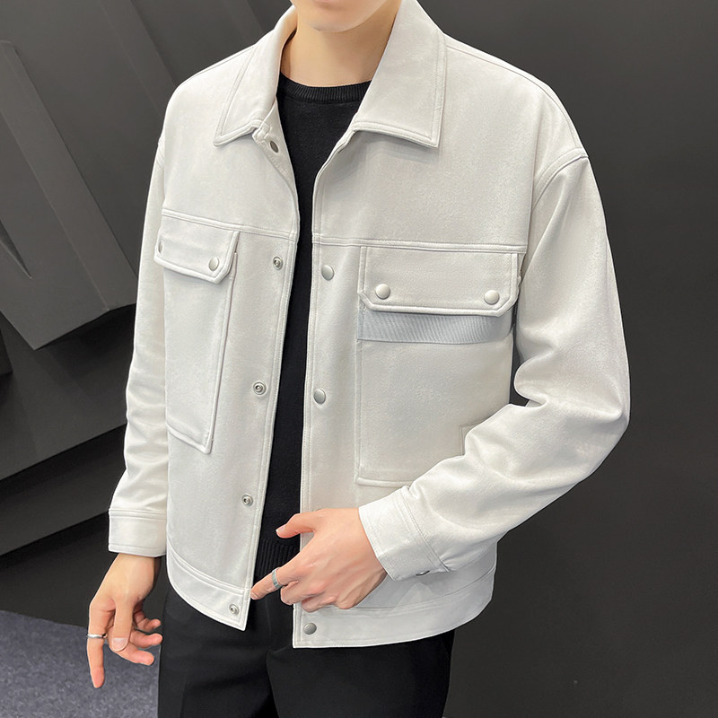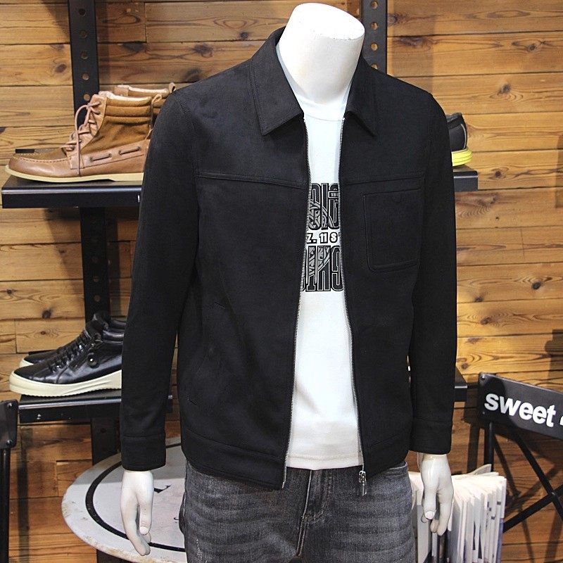 春秋新款鹿皮绒夹克男欧美简约英伦单排扣商务休闲时尚宽松短外套