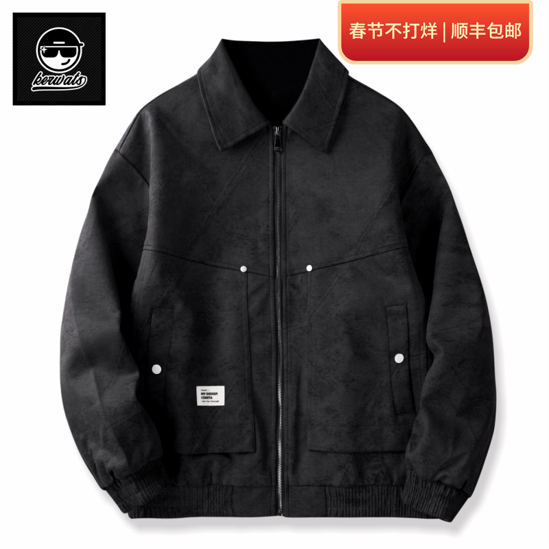 KERWATS品牌大码男装鹿皮绒翻领百搭外套2025年春秋新款休闲夹克