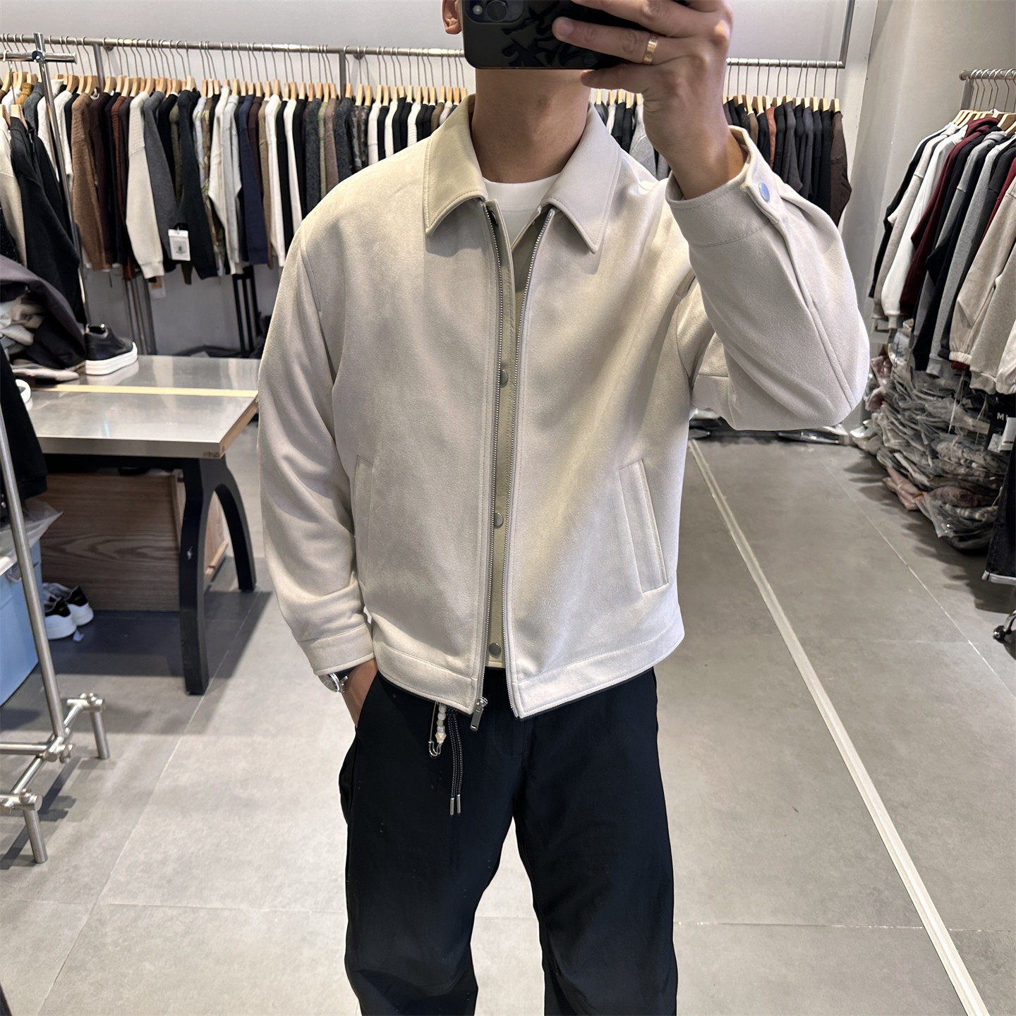 鹿皮绒男士高端外套春秋潮牌痞帅2022新款高级感冬季翻领工装夹克
