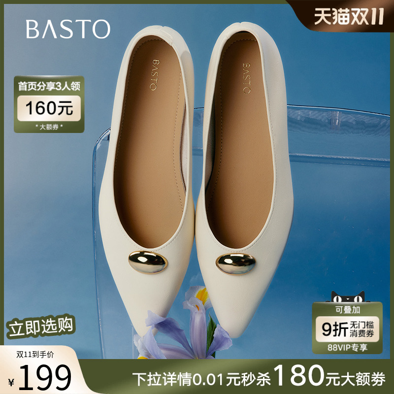 百思图2025春商场新款通勤浅口尖头女单鞋妈妈鞋船鞋瓢鞋F1518AQ5