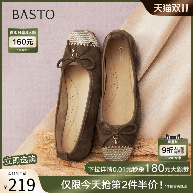 达芙妮法式单鞋女秋季2025新款芭蕾舞软平底鞋绒面瓢鞋船鞋奶奶鞋