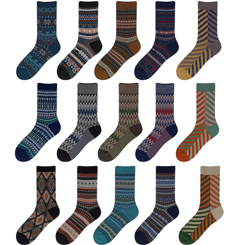 民族风复古无骨毛线袜子男纯棉中筒袜长彩色艺术秋季潮靴袜情侣袜