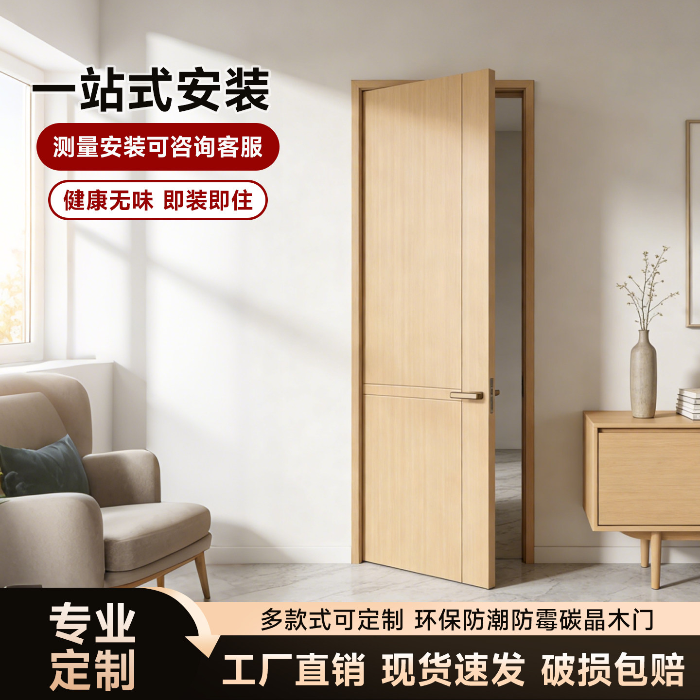 定制卧室门碳晶门室内门免漆门多层实木门实木复合门套装门垭口套