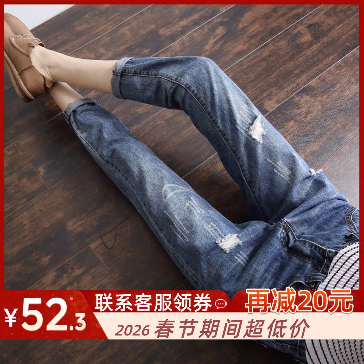 - 破洞小脚裤 女