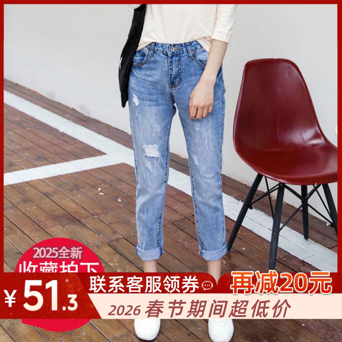 破洞牛仔裤女九分裤相关搜索