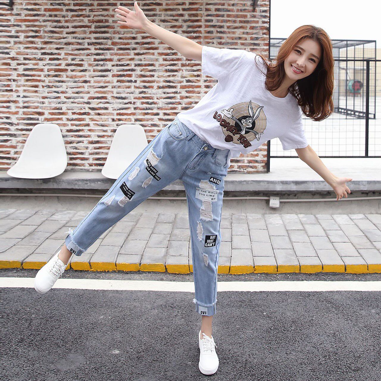 - 裤破洞牛仔女