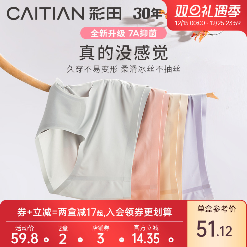 彩田女士中腰冰丝轻薄无痕内裤女抗菌裆一片式透气少女三角内短裤