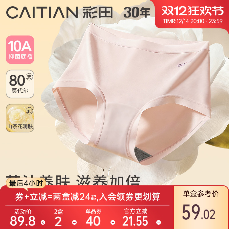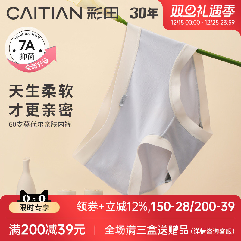 彩田内裤女莫代尔棉面料中腰31739高腰31792纯色抗菌无痕青年抑菌