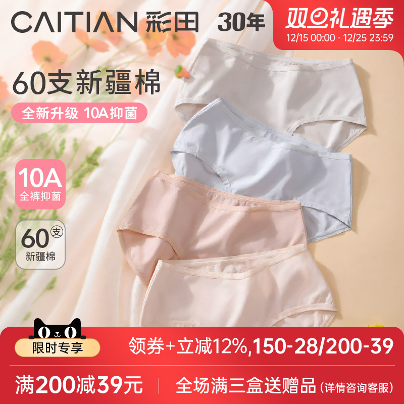 彩田内裤女2025秋冬新款透气7A抗菌裆少女女生A类棉三角内裤女士