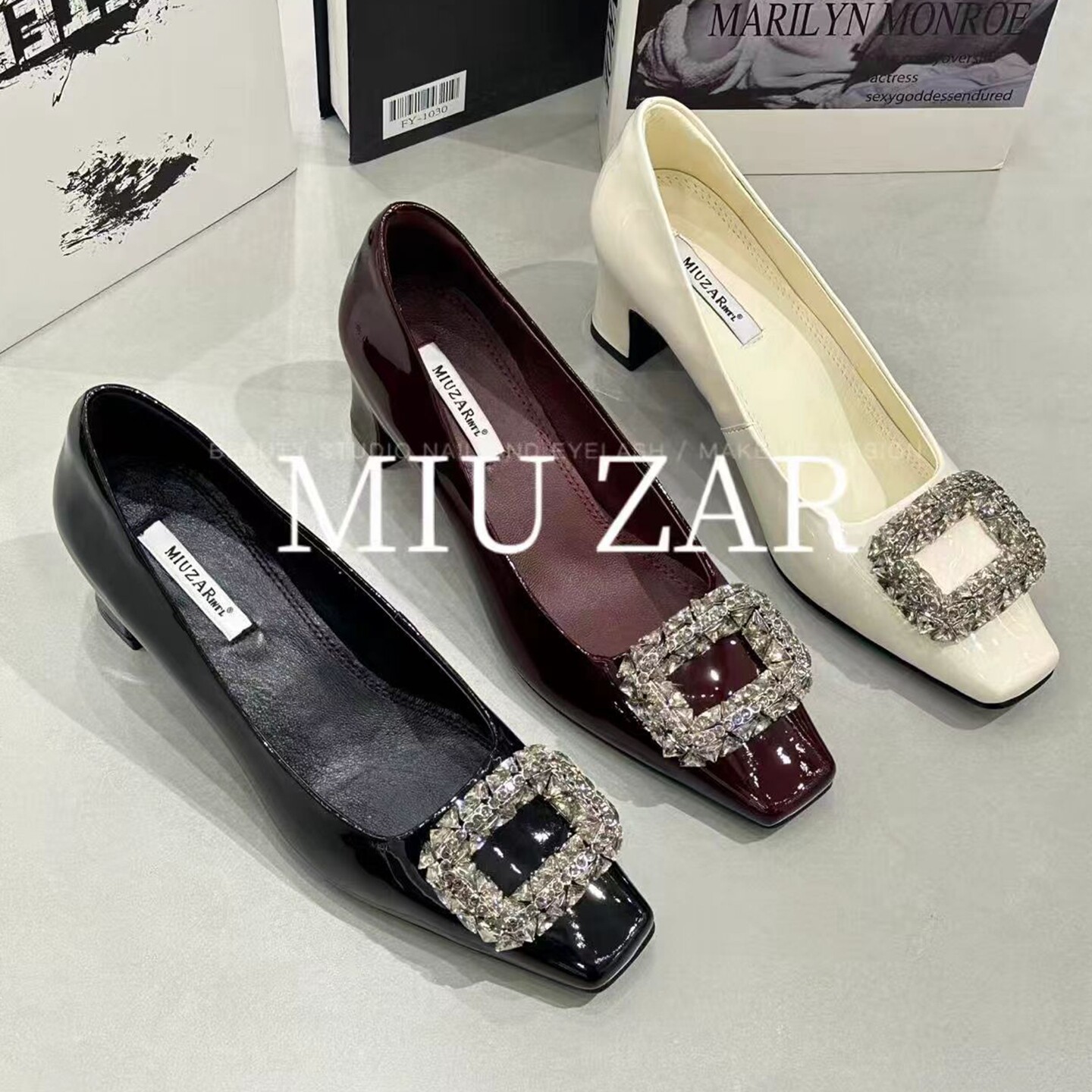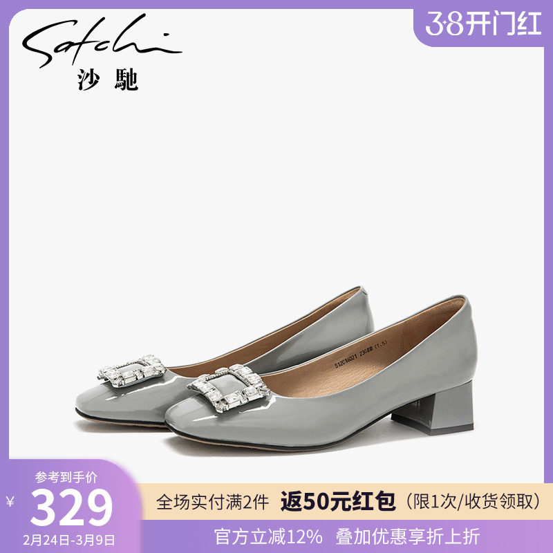 - 漆皮方扣单鞋