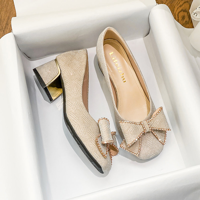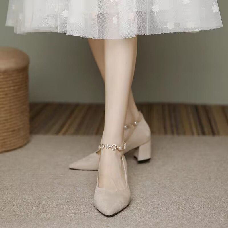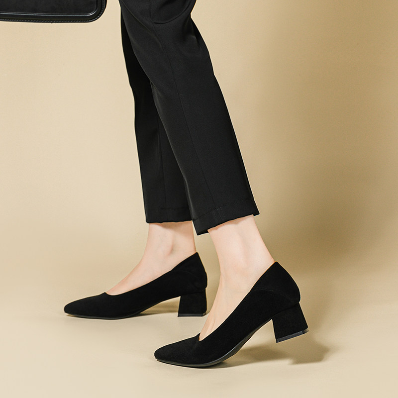 - 女鞋春秋单鞋 粗跟 尖头