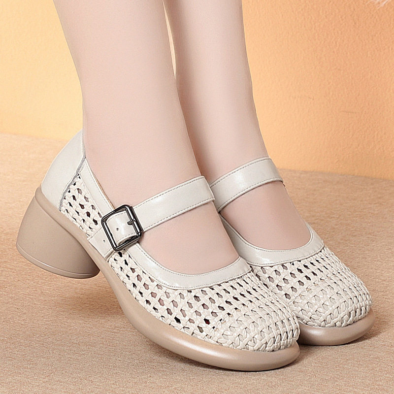 - 跟女皮鞋真皮中牛皮单鞋
