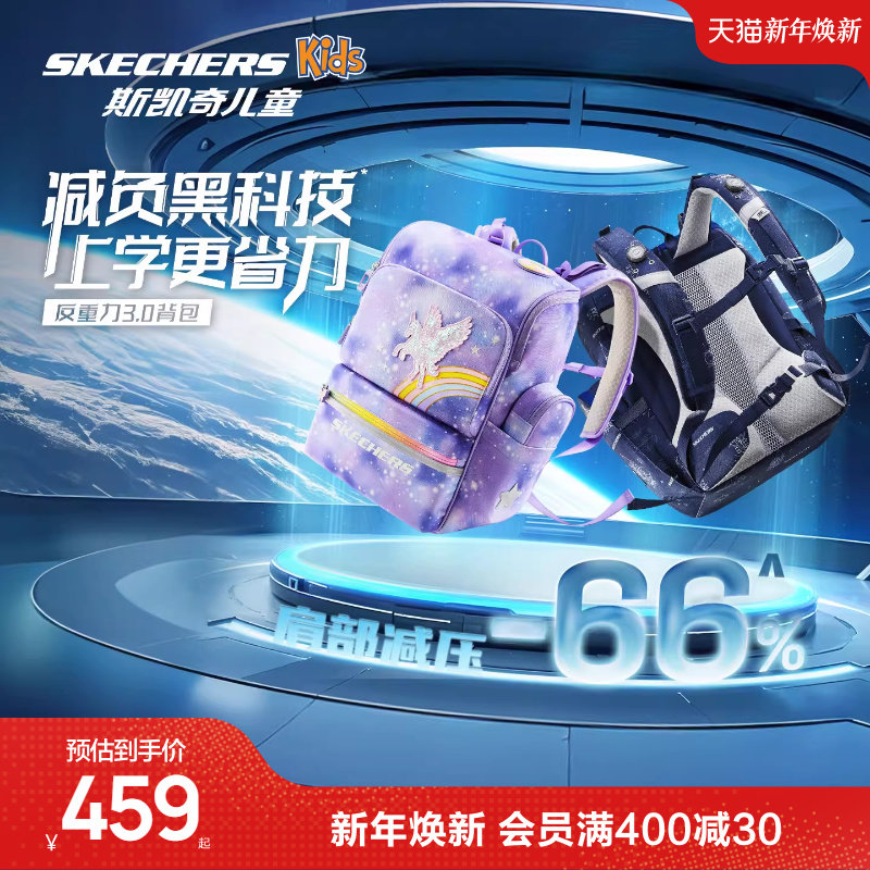 Skechers斯凯奇儿童反重力3.0背包女童独角兽卡通书包大容量背包