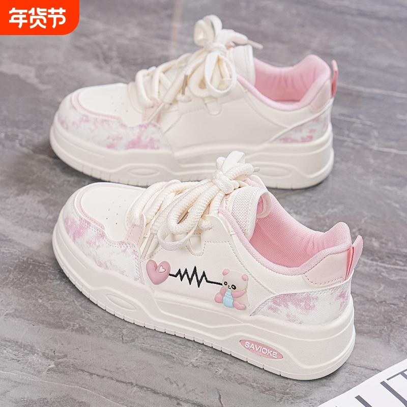 小白鞋女2025春秋新款爆款百搭学生休闲运动爱心小熊小众韩系板鞋
