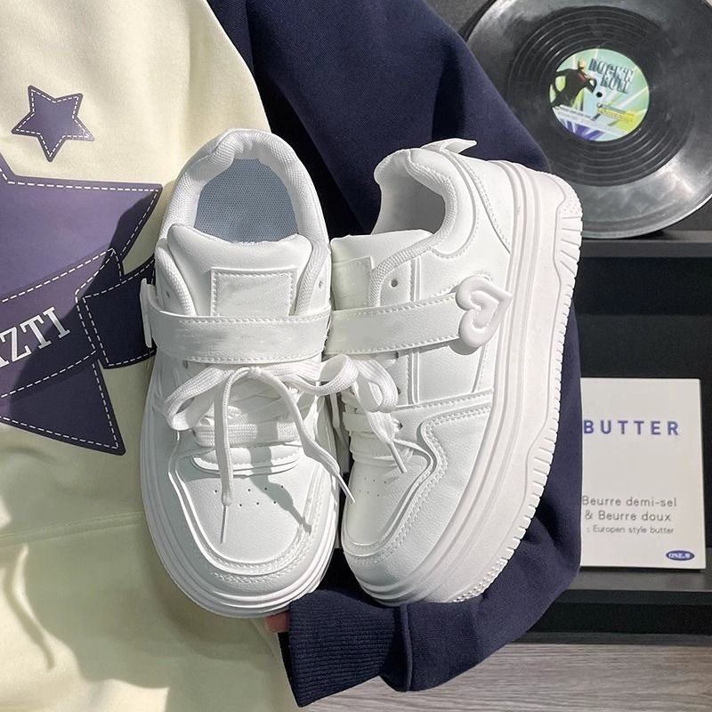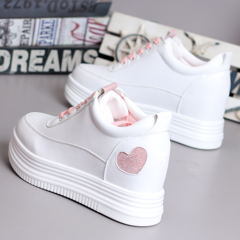 国潮校园风厚底爱心小白鞋女休闲轻便透气学生百搭小个子增高板鞋
