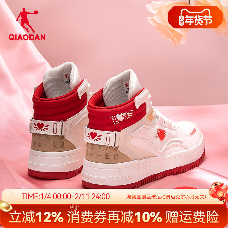 乔丹女鞋爱心高帮板鞋女2025新款情侣鞋休闲鞋小白鞋运动鞋鞋子男