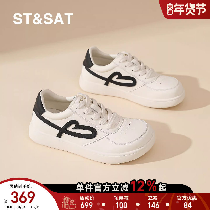 星期六爱心小白鞋女春季新款百搭复古休闲浅口板鞋圆头系带运动鞋