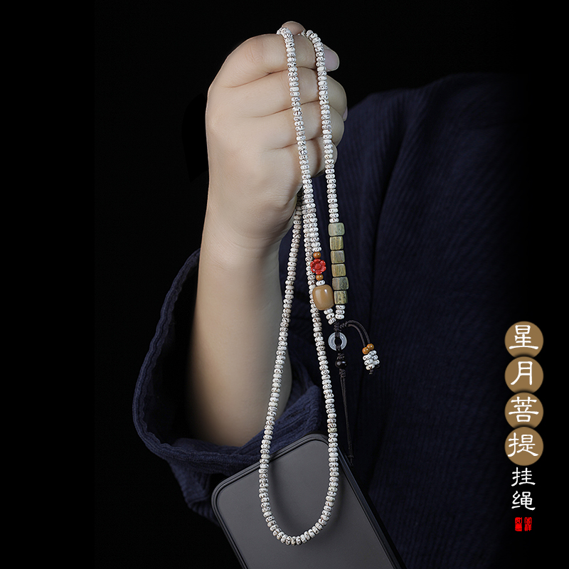 手机链挂绳挂脖女款高端天然迷你星月菩提籽吊绳结实牢固卡片扣绳