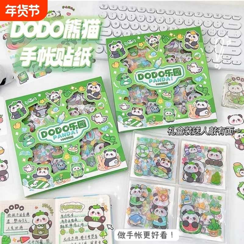 熊猫贴纸100张手账礼盒手帐女孩儿童咕卡贴纸防水贴画玩具可爱卡通水杯手机壳装饰小图案周边文具礼物立体