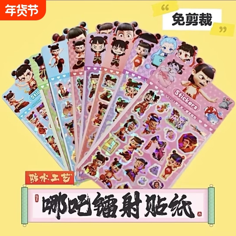 哪咤之魔童闹海贴纸女孩儿童卡通可爱手帐手账咕卡素材敖丙镭射哪吒2贴画手机壳水杯装饰小图案奖励粘贴贴纸