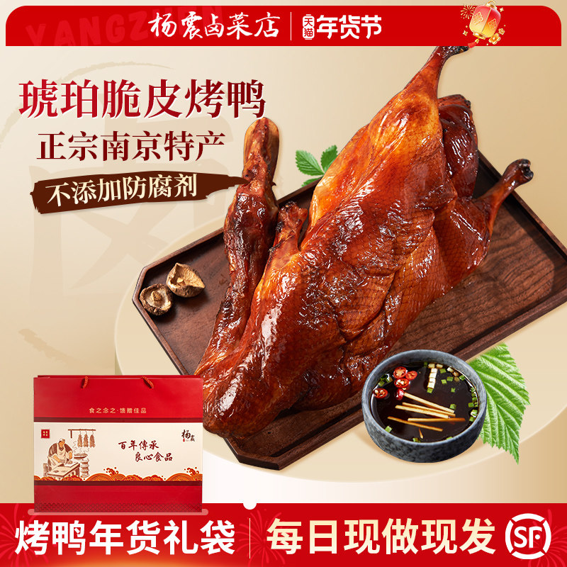 南京烤鸭礼盒年货正宗老字号鸭子南京特产3斤整只烤鸭真空带卤汁