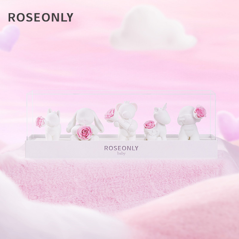 ROSEONLY诺誓永生花迷你公仔家族玫瑰礼盒送女友爱人情人节礼物