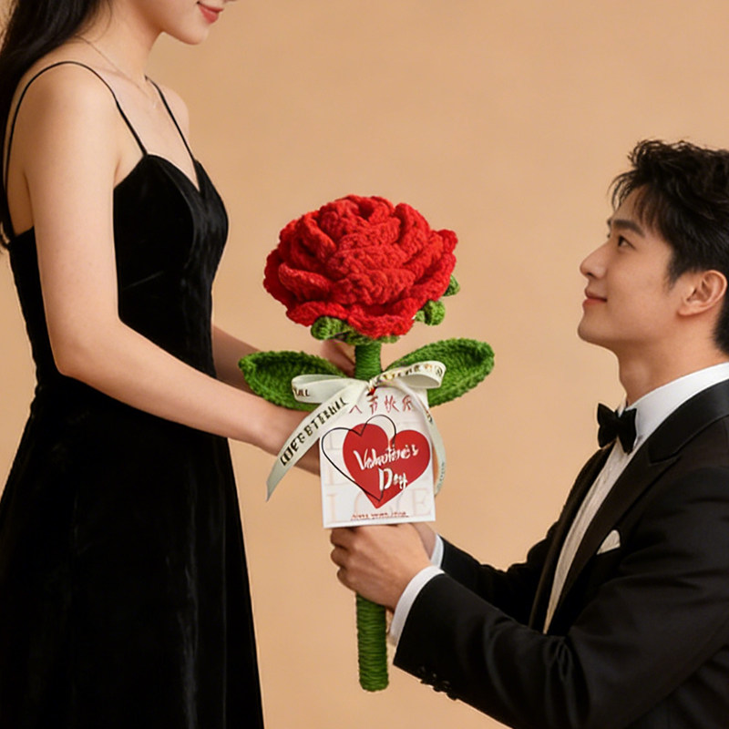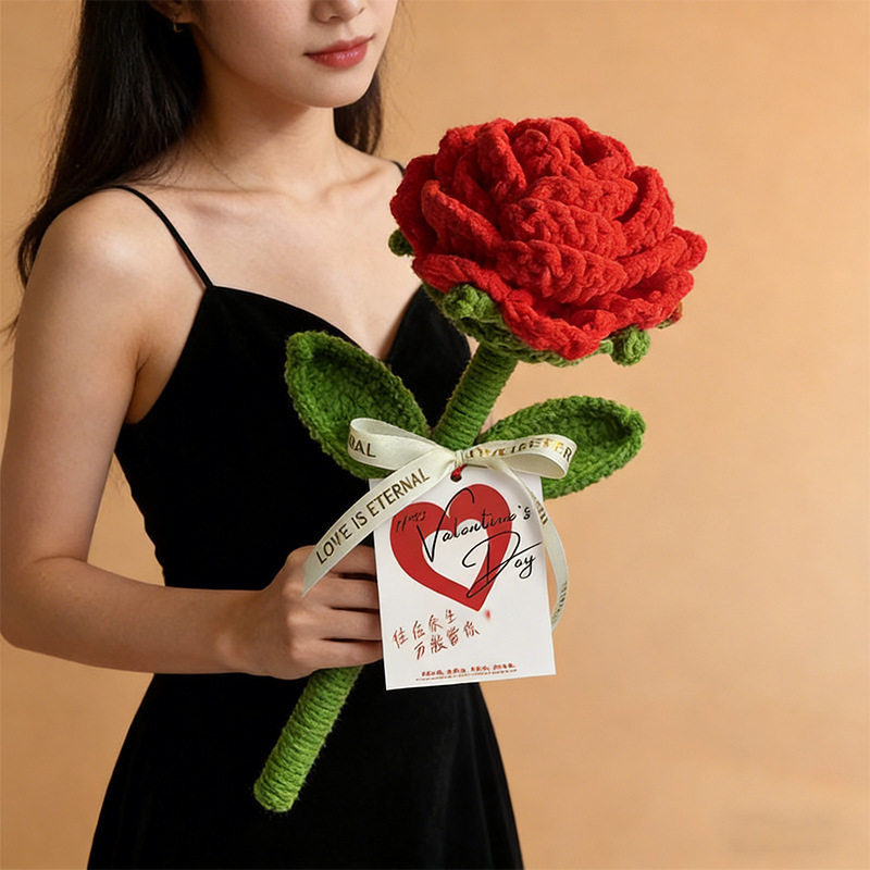 手工编织巨型玫瑰花成品手工花束送女友爱人玫瑰花花束情人节礼物