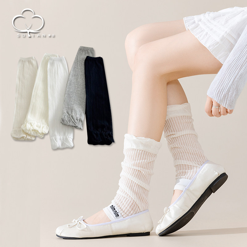白色袜套夏季薄款袜子女竖条腿套夏天y2k灰色长筒透气堆堆袜女生