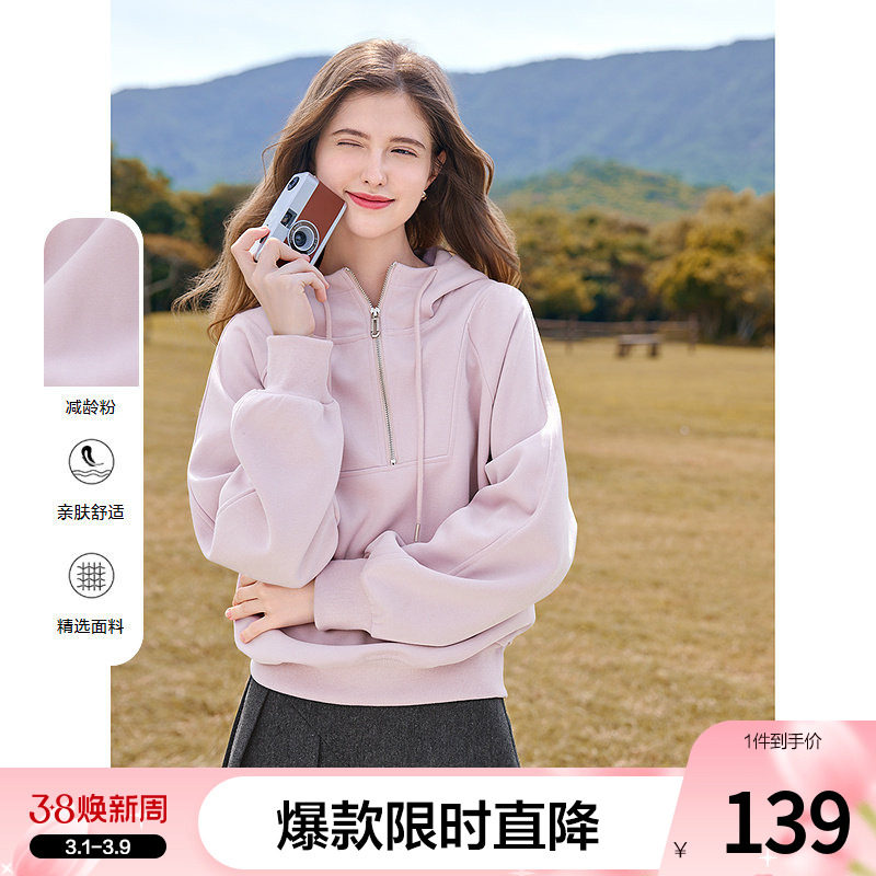 - 羊羔毛套头卫衣女