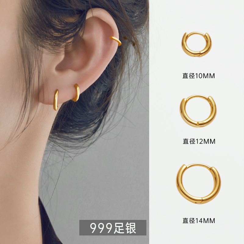 S999纯银黄金色素圈耳环2025新款爆款养耳洞耳钉女实心耳圈男耳饰