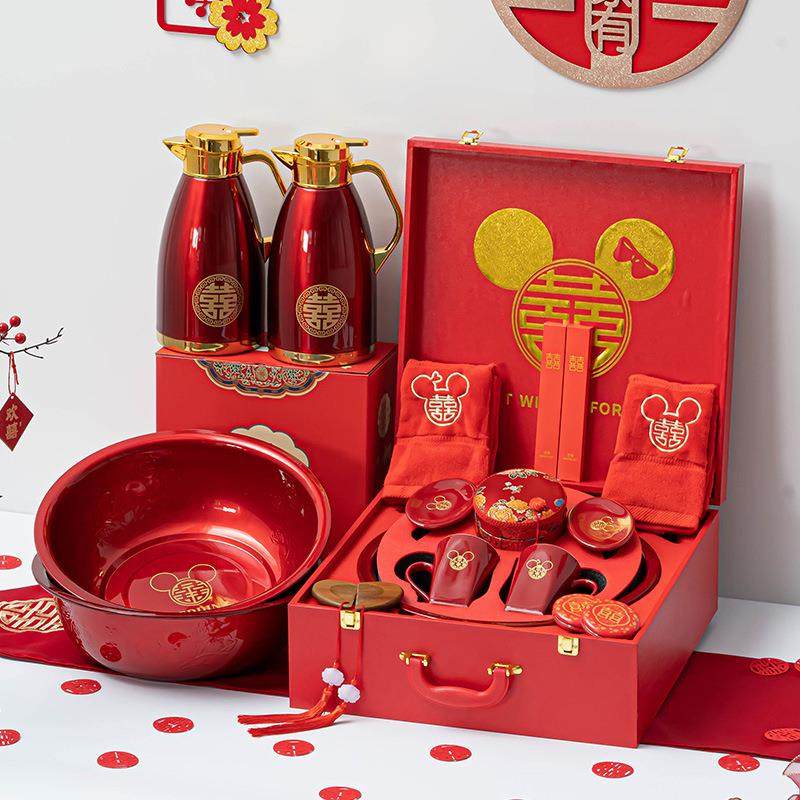 结婚陪嫁用品大全高档女方新娘嫁妆喜盆暖水壶洗漱婚庆用品全套装