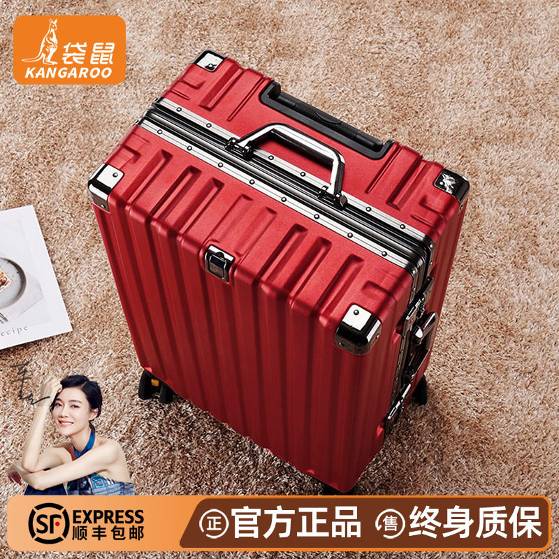 袋鼠红色行李箱结婚陪嫁用品女2025年新款新婚旅行拉杆密码皮箱子