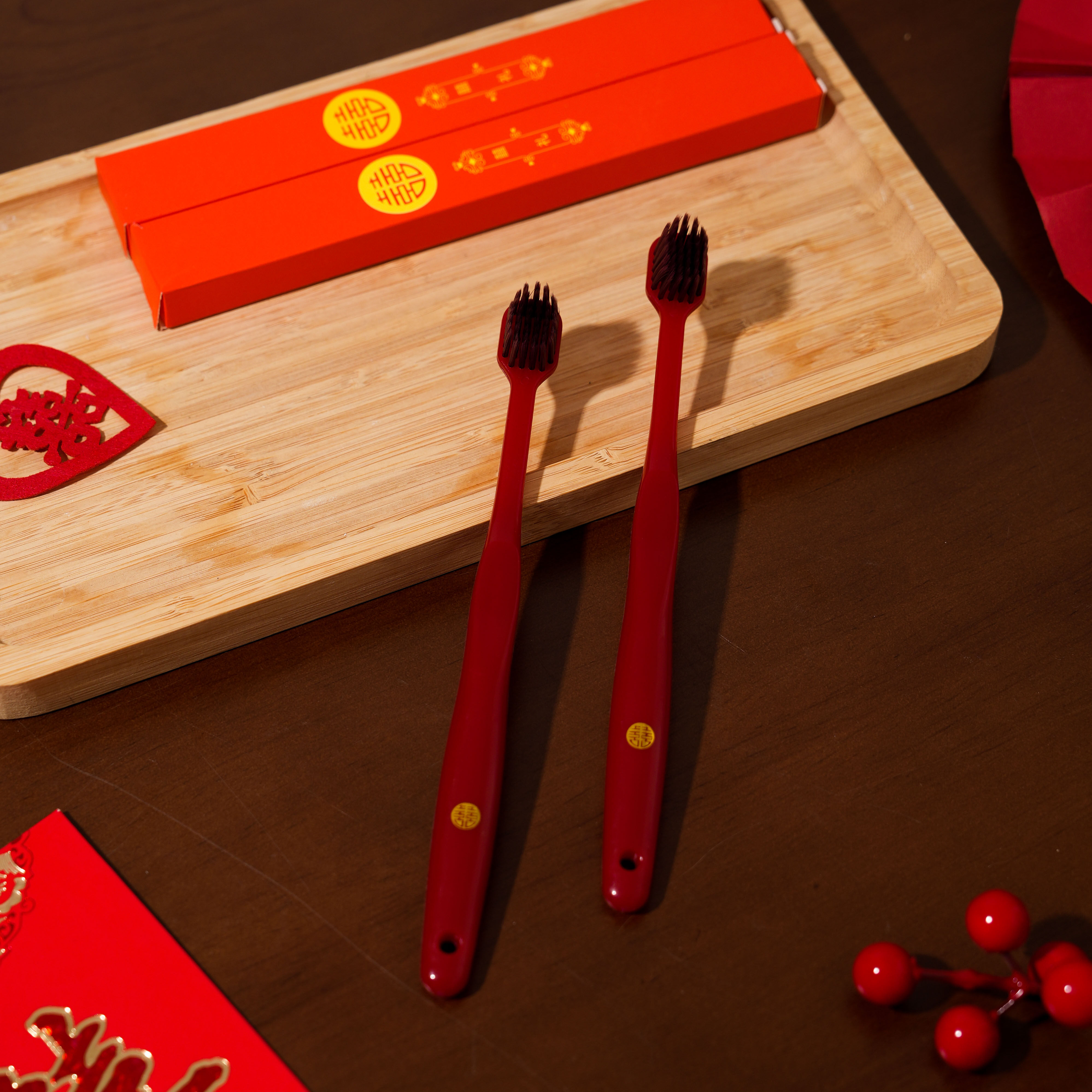 结婚陪嫁用品红色喜字硬毛牙刷红色一对情侣新婚礼物喜庆婚庆大全