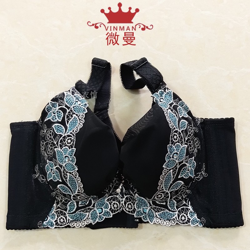 依曼丽大胸显小调整胸型文胸记忆钢圈上托聚拢黑色蕾丝性感内衣女