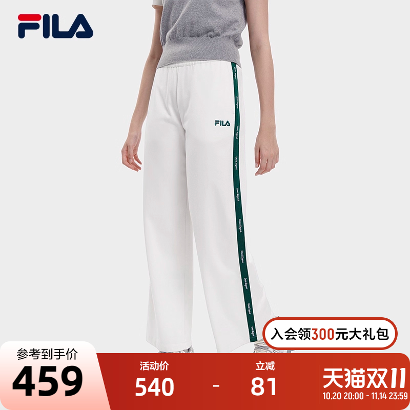 FILA 斐乐官方女子针织长裤2023秋季时尚休闲宽松阔腿网球裤