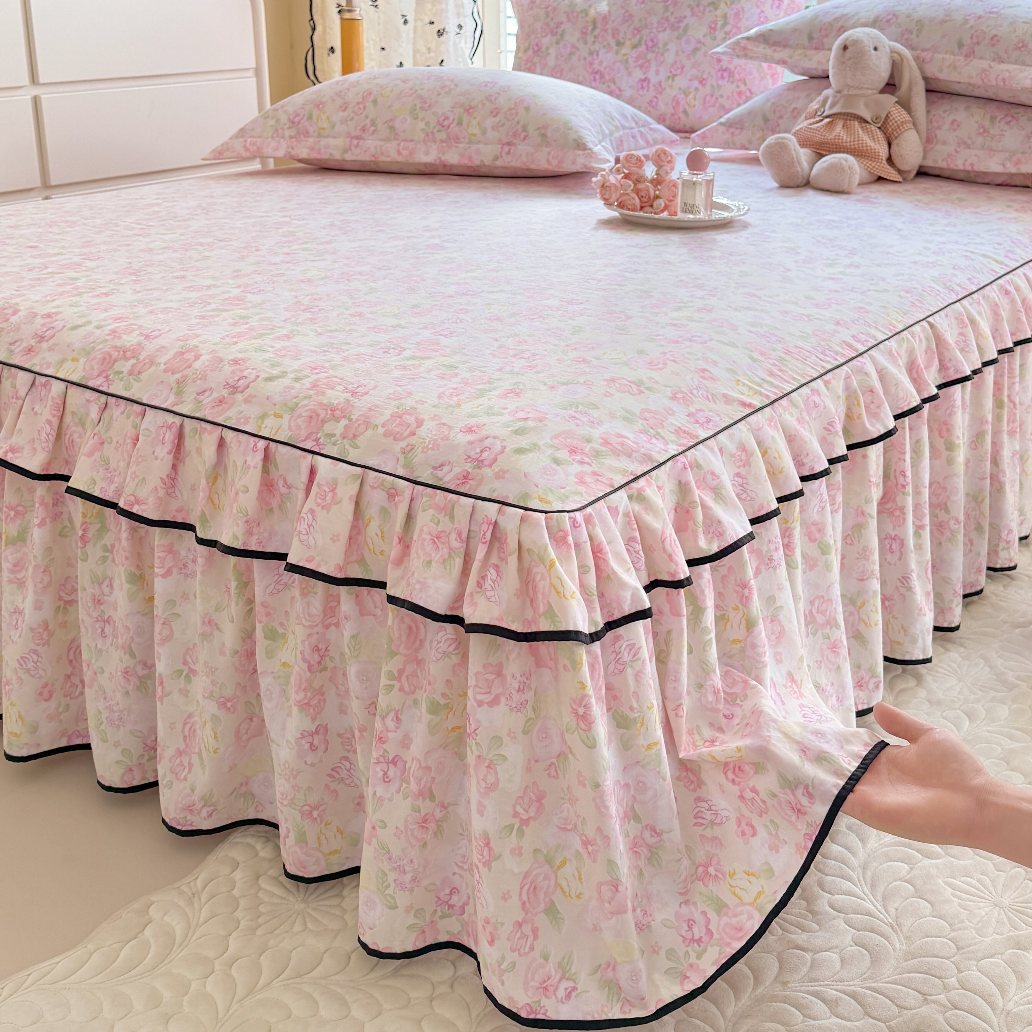 法式花边床上四件套纯棉全棉2025碎花床裙被套床单宿舍床品三件套