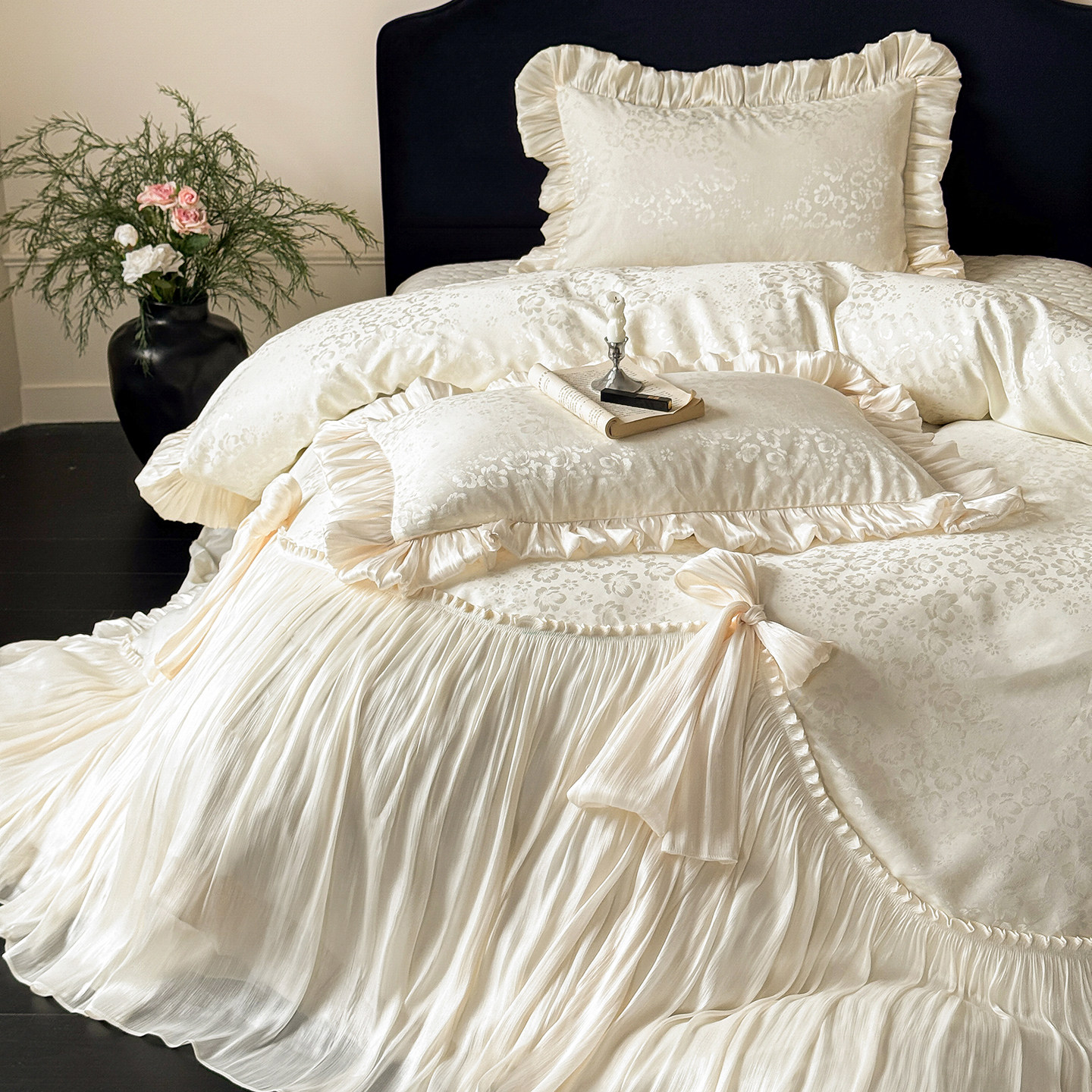 法式浪漫奶油风全棉四件套纯棉公主风荷叶边被套蕾丝仙女床裙款4