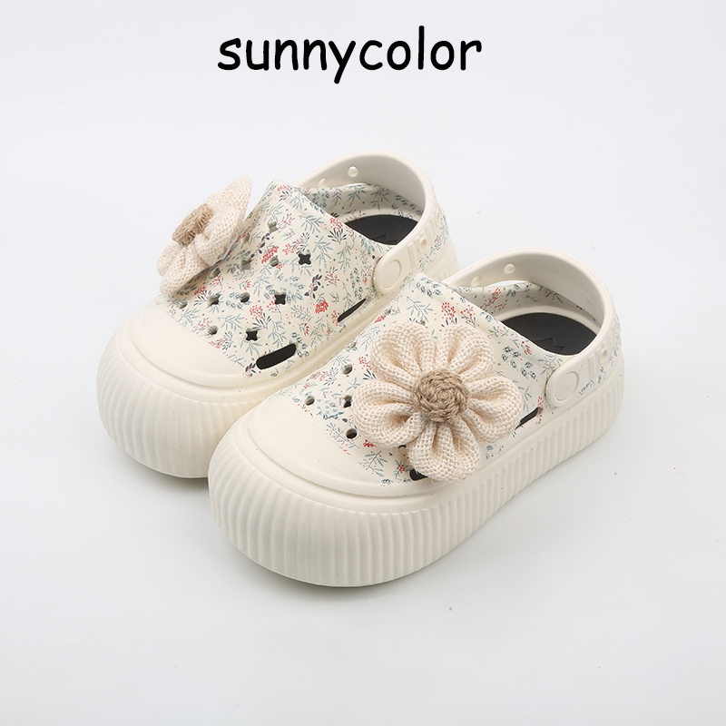 SUNNYCOLOR小碎花洞洞鞋女款厚底外穿休闲花朵沙滩鞋包头拖鞋女夏