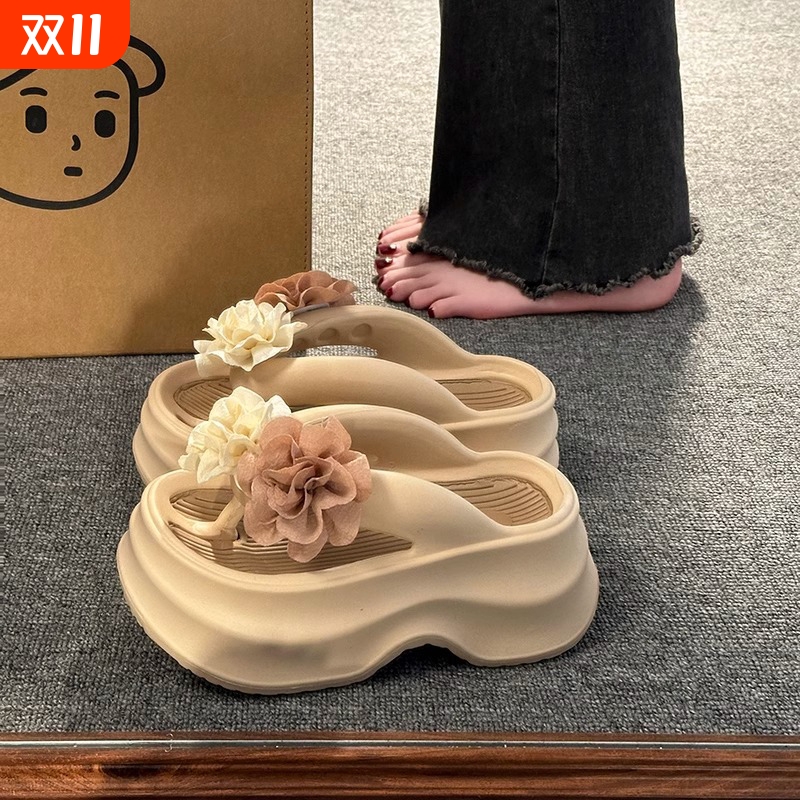 踩屎感厚底人字拖女夏季2025新款厚底花朵沙滩鞋夹脚凉拖鞋女外穿