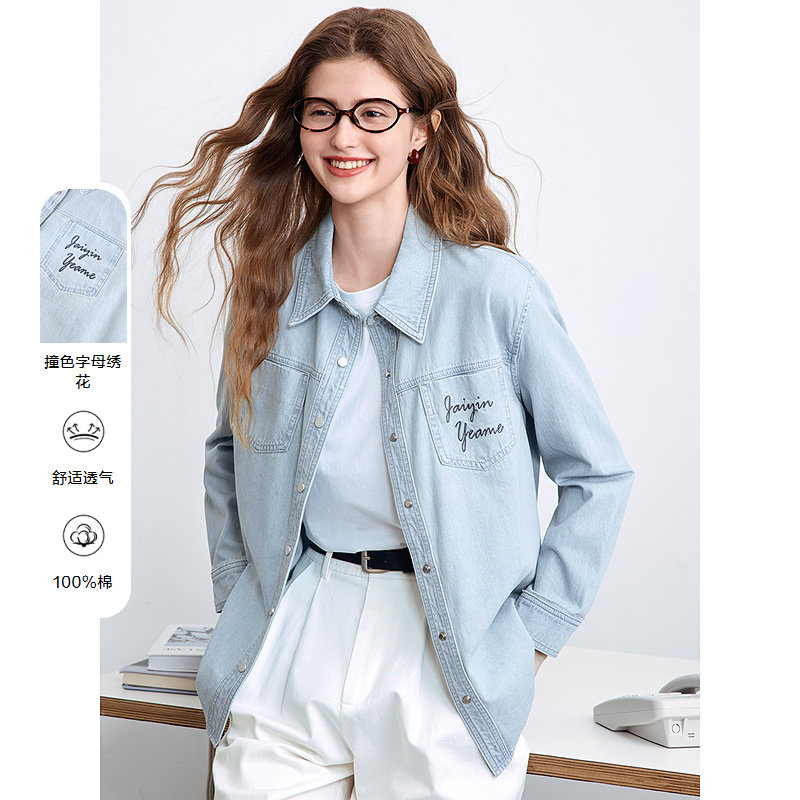 betu百图浅蓝色牛仔衬衫女长袖2026年秋季新款宽松显瘦衬衣外套