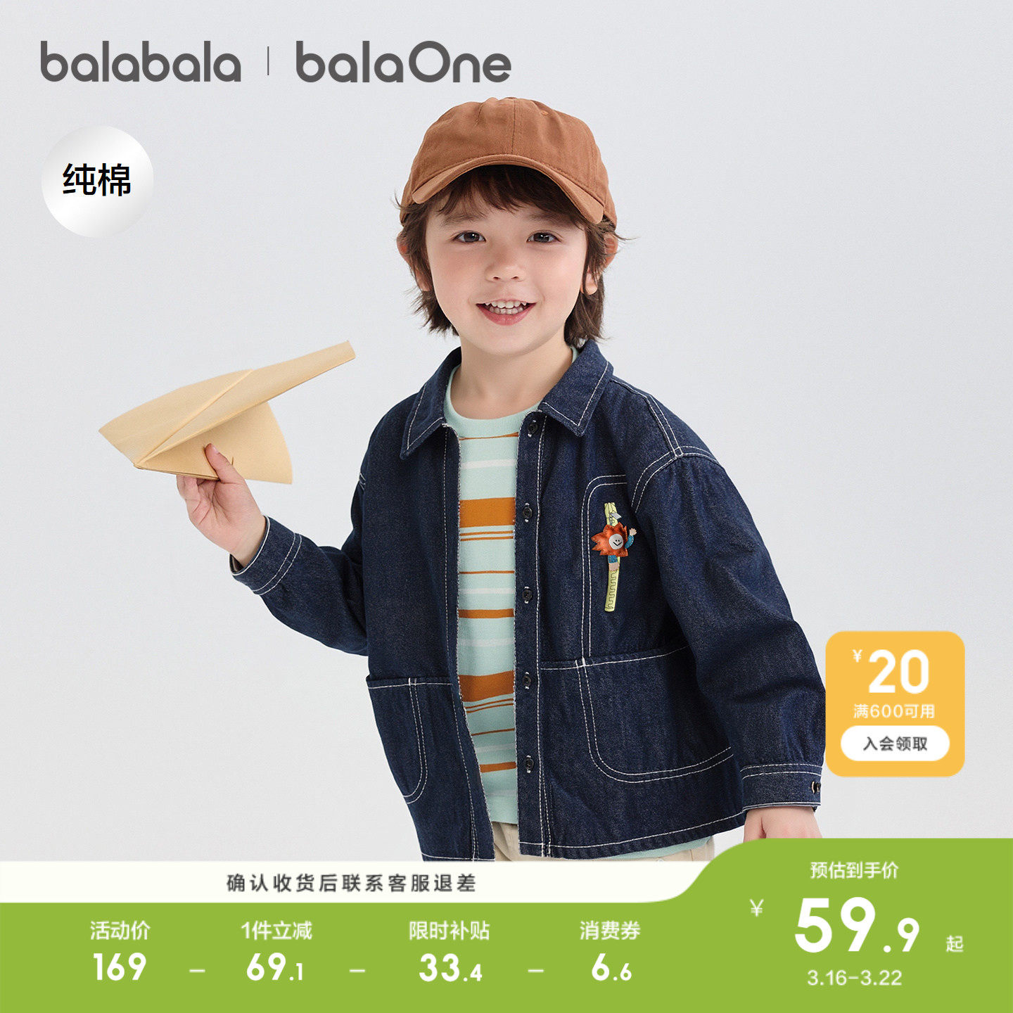 巴拉巴拉童装宝宝衬衫儿童纯棉牛仔外套男童女童2026休闲春装宽松